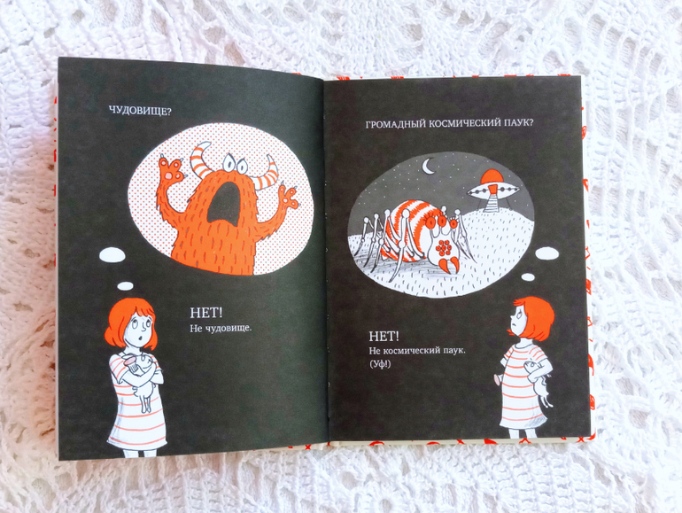 Текст сопровождается бордово-белвми иллюстрациями. ( ещё одна книга двухцветных иллюстраций))) Дочкам нравятся)