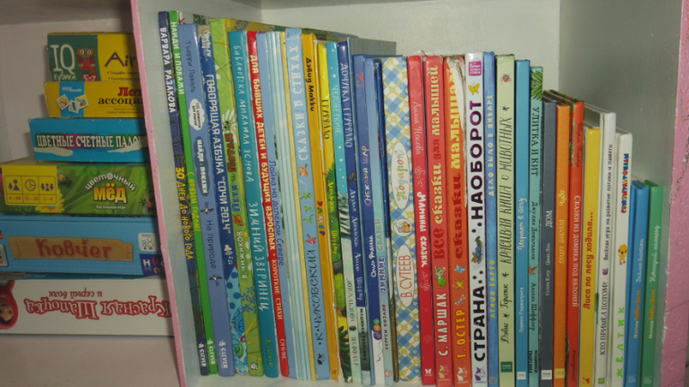 В этом месяце девочки не смогли ограничится одной полкой, принесли в детскую много книг....ладно не все)))
