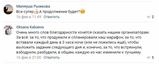 Интересно было каждый день читать новые задания, которые мотивируют на действия.