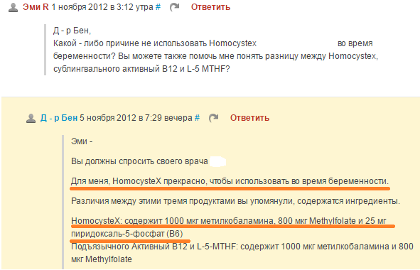 Доктор Бен Линч рекомендует при беременности комплекс витаминов, содержащих 150 мкг метилкобаламина. Но при этом, он также пишет в комментариях, что комплекс, содержащий 1000 мкг метилкобаламина (активная форма В12) приемлемо применять при беременности (на картинке автоматический перевод, поэтому корявый):