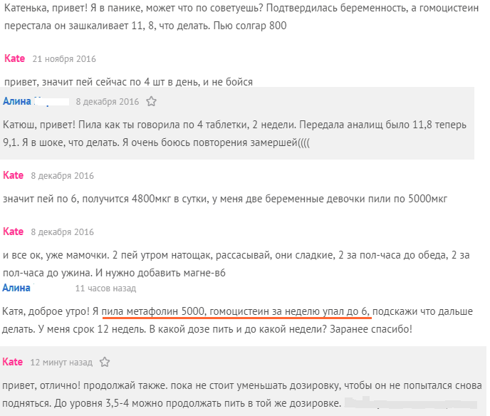 «Золотым» стандартом при беременности является дозировка фолатов 800мкг. Именно столько содержат почти все витамины для беременных. Иногда, при очень высоких уровнях гомоцистеина приходится принимать по 5000 мкг метилфолата (=5мг), но как правило недолго, ведь существенного снижения можно добиться уже за 1-2 недели, и дальше снижать дозировку. Мое мнение по этому вопросу такое- 5 мг метилфолата гораздо лучше и «роднее» для организма, чем 5мг синтетической фолиевой кислоты, так что, как говорят у нас в Одессе, это две большие разницы. Врачи назначают и по 5 и по 15 мг фолиевой кислоты при беременности, иногда еще больше, причем в такой дозировке до 12 нед. 5 мг метилфолата это максимум, который понадобится, и то не всем, но может снизить гомоцистеин за 7-10 дней. Я думаю, что гораздо опаснее иметь очень высокий гомоцистеин при беременности, чем краткосрочно попринимать метилфолат в дозировке 5 мг.