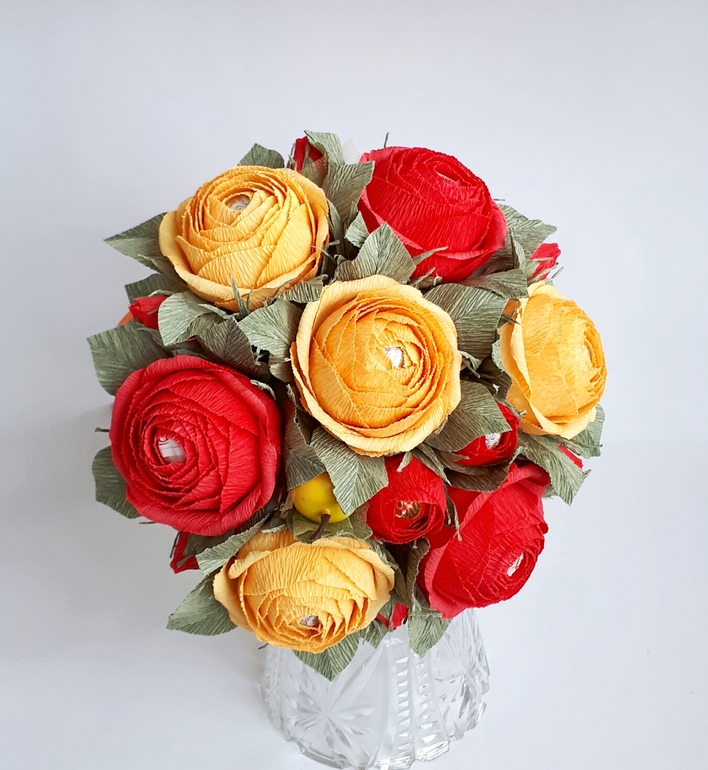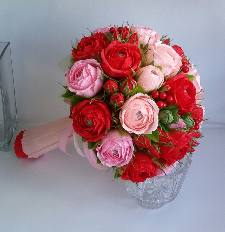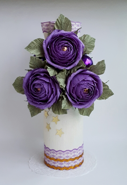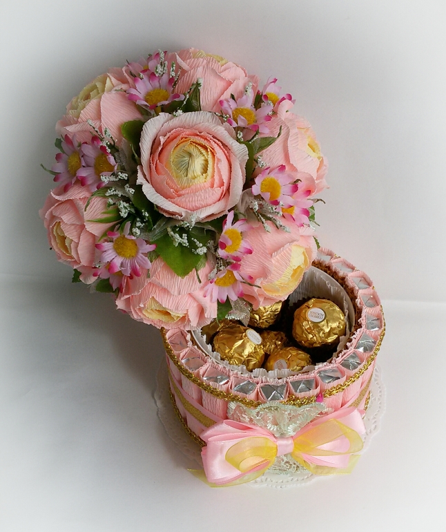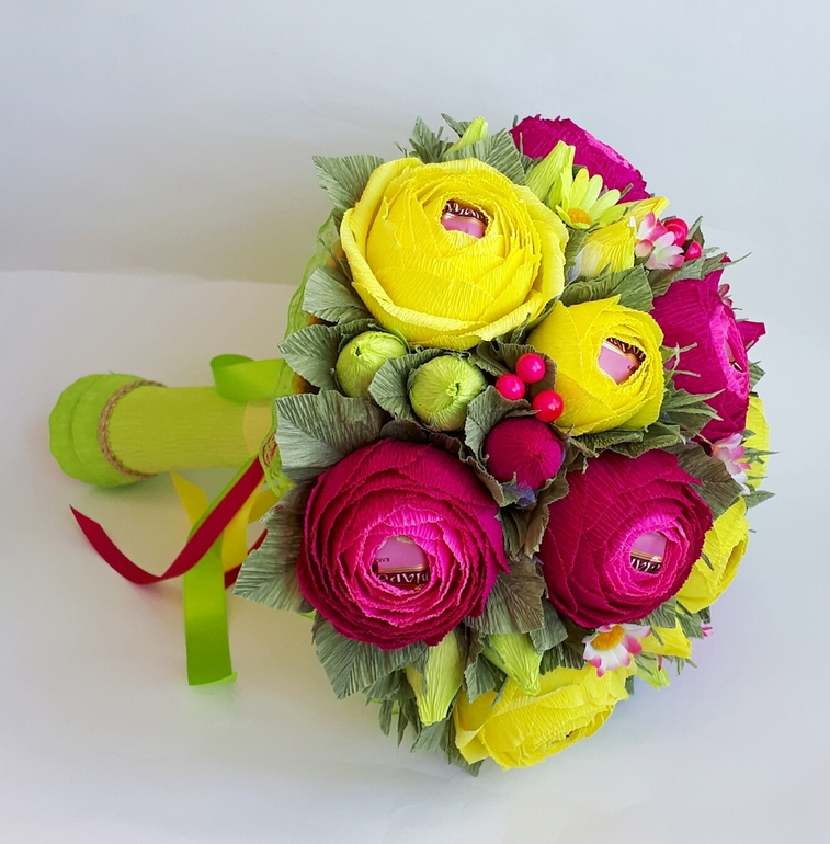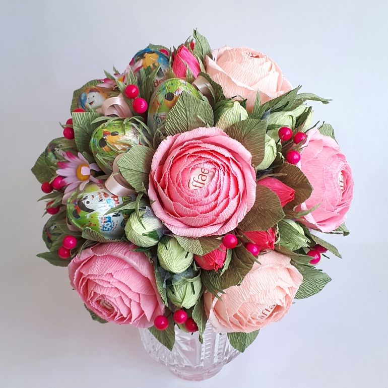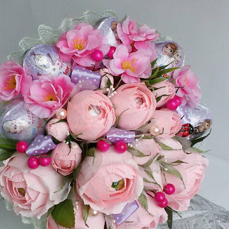 Предлагаю бюджетные букетики. Диаметр цветочной шапочки 25-26 см. Высота 40 см. В составе 13-15 конфет mix. Цена 750-800 р Бесплатная доставка до любой станции метро +79683346674 Звоните, пишите .