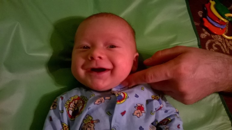 - он все больше улыбается осознанной улыбкой, и у нас даже получилось это сфоткать