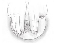 ✅Положите пальцы на околососковый кружок (ареолу) так, чтобы они касались соска. ✅Если ареола очень сильно отекла, т.е. очень твердая наощупь, лягте на спину и/или попросите, чтобы кто-то надавил на ареолу поверх ваших пальцев.