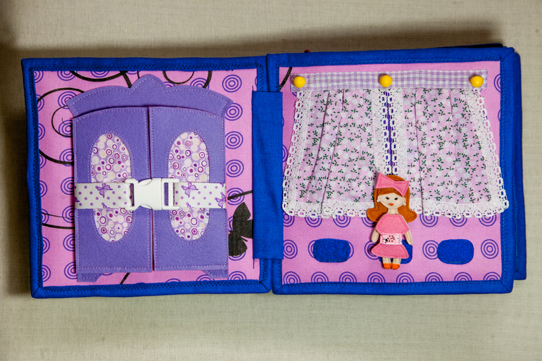 Шкаф застегивается на фастекс. Учимся застегивать-расстегивать. В шкафу на липучках наряды Дюймовочки.