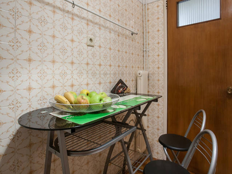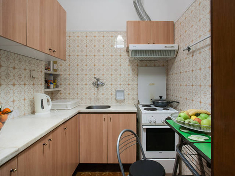 В спальне двуспальная кровать, музыкальный центр, холодильник, утюг. В зале диван (не раскладной, для одного), стол, комод. На кухне электроплита, микроволновка, чайник, посуда, соковыжималка для цитрусовых. В ванной душ, стиральная машинка, фен. В стоимость включены постельное белье и полотенца, шампунь, гель для душа, безлимитный интернет.