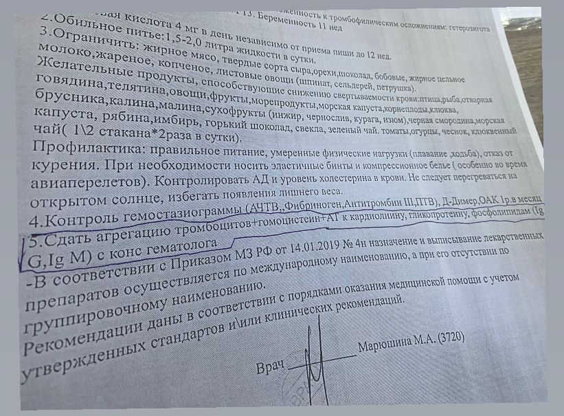 Все остальные анализы, такие, как фибриоген, агрегация тромбоцитов, гомоцистеин и другие антитела в норме!
