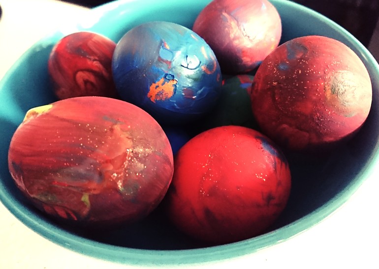 яйца мы красили вместе с детьми