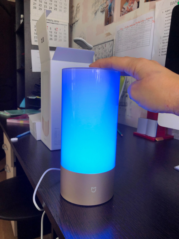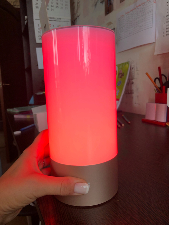 Мой светильник не безызвестной фирмы Xiaomi, из умного в нем пожалуй только смена режимов))) Но он отлично вписался в интерьер. Включаю его по вечерам, и его свет задает настроение) Зеленый успокаивает, красный - наоборот) Иногда переставляю его в детскую, как ночник, так как он не яркий совсем.