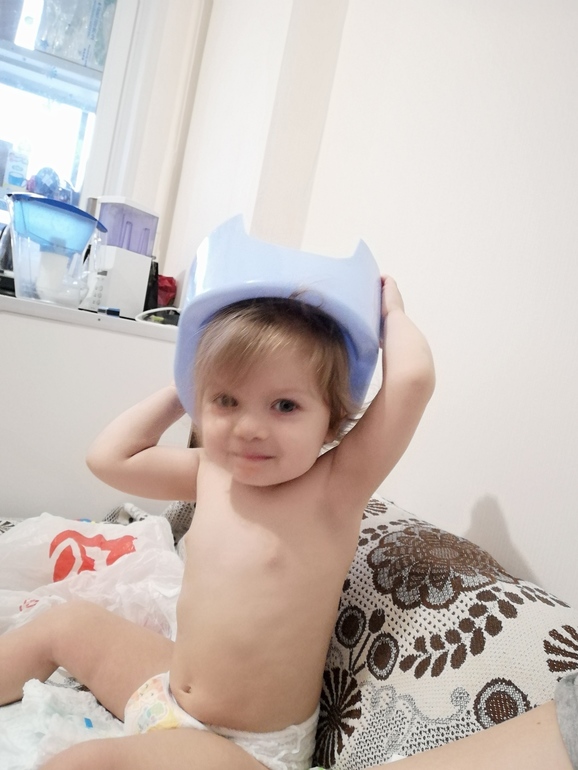 ВаляХотя больше на 7 марта) Валя наконец более-менее поняла, что мы от неё хотим, и пошла на горшок. Не хочется сглазить, но бегая без трусов, промахов за два дня не сделала. В подгузник писает и какает, без него бежит сама к горшку писать, но по-большому сходила на пол... И к обычным трусам не привыкла - сделала лужу на диван, осталась недовольна, хочет бегать совсем без них. Но не всё ж сразу 😉