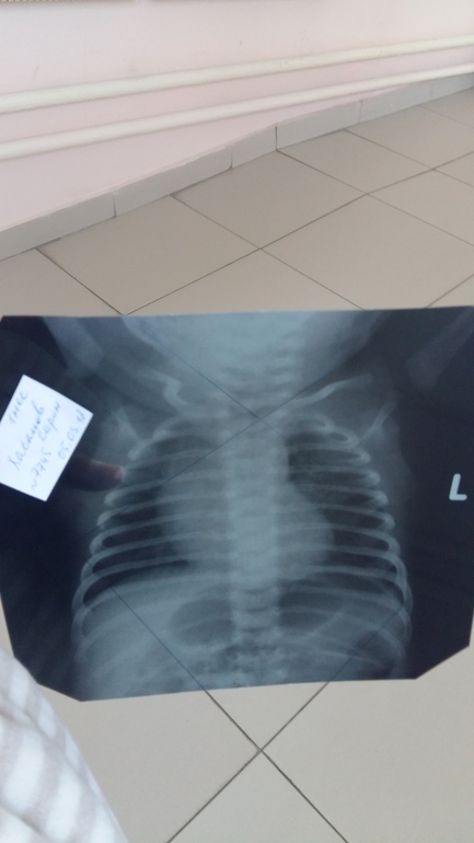 Рентген. Подхожу к кабинету, а там табличка "вызвали в реанимацию" и ожидали мы долго-долго. Мне было интересно, как делают рентген малышам. Вот и посмотрела. На стол кладут деревянную горочку + матрасик. Ниже пупка оборачивают защитным слоем и я держу его за руки, он как бы полу висит. Благо эти пытки недолги. Щелк и готово.