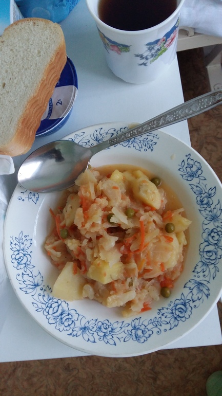 Больничное питание - это вообще отдельная тема. У меня папа перенёс инсульт и месяц после реанимации лежал в неврологии, запах этой тушёной капусты вызывает у меня соответствующие ассоциации... и представь, что со мной было, когда такую такую капусту принесли в роддоме?