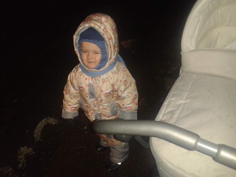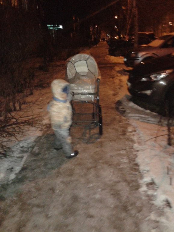 Ну наконец-то мы вышли гулять почти всей семьей-Дима, Дарина, я и Бабушка. Дима вез коляску, я только подруливала.