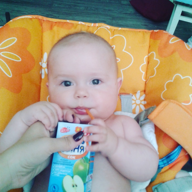 Девочка наша очень любит поесть. Теперь на ночь кушаем кашу с ложки, пием водичку из чашки(половину на себя конечно же), сегодня сок из трубочки. Дима не сразу понял как пить, а эта моментально, как будто всю жизнь так пила. Уже три дня капризы. Титю ест по хорошему только ночью. Днем соснет и я с фонтаном молока ползаю над ней, а она отворачивается. Зато печеньку в ниблере сосет. Походу кто-то скоро откажется от груди. Ой, дай бог только бы со стулом проблем не было...