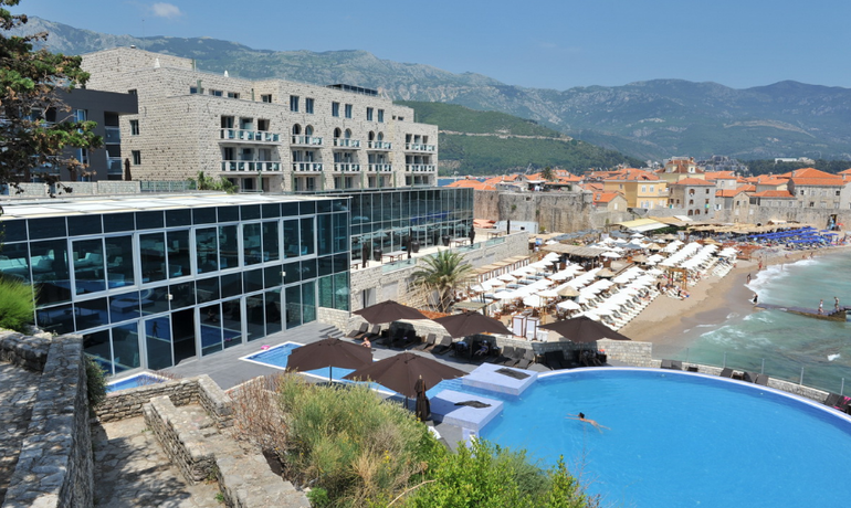 Avala Resort & Villas 4+* - пожалуй, лучший отель в Будве по совокупности нескольких разных параметров. Во-первых он расположен в исторической части Будвы, в нескольких шагах от Старого Города. Во-вторых он находится прямо на берегу моря и имеет свой собственный пляж. У отеля самый большой на курорте бассейн, который виден даже из самолета. Ну и, наконец, в отеле отличная кухня (и система «Все включено»!). Поэтому если вы решили провести отпуск в Будве, совместить культурный и пляжный отдых - то этот отель, несомненно, стоит рассмотреть в первую очередь.