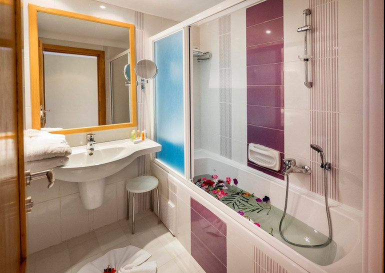 - Ванна или душевая, фен, халат и тапочки, средства личной гигиены в индивидуальной упаковке пополняются ежедневно