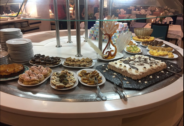 - Одно бесплатное посещение за время пребывания в отеле по предварительному бронированию за 24 часа. Бесплатное посещение включает следующее меню: закуски, основное блюдо на выбор, десерт и чай, ½ вина и ½ воды на человека