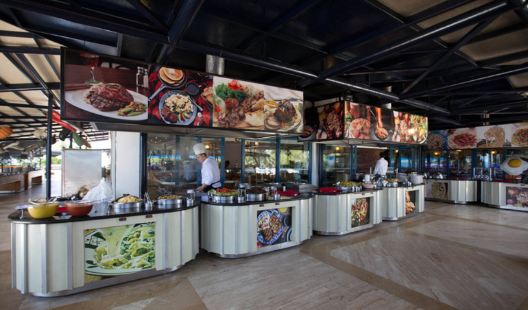 В концепцию входит: завтрак, обед и ужин - шведский стол, поздний завтрак, закуски-сладости, мороженое, турецкие лепешки (в сезон) в определенные часы, снэк, фрукты, полдник, ночной легкий ужин, ночной завтрак, диетическое меню, круглоcуточно местные алкогольные и безалкогольные напитки и некоторые импортные.