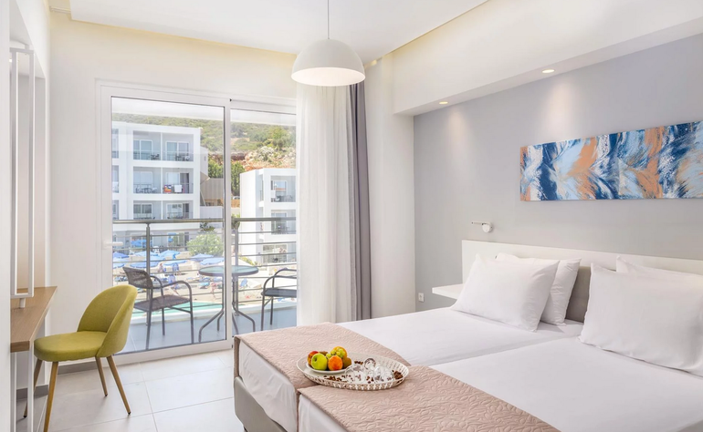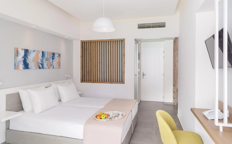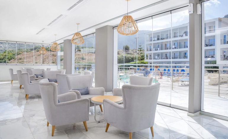 Пляж ближайший минут 5. Идти через соседний отель TALEA BEACH. От него и лежаки, за два лежака, зонтик и 2 бутылки воды - 7 евро. Очень приемлемая цена. Пляж песочный, море шикарное, прозрачное и очень чистое! Рядом горы... Вид обалденный. Пляжу (и то не отельному) огромный плюс!