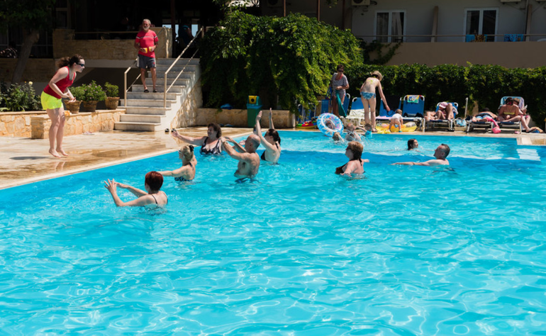 Отель ранее он назывался Atali Village и имел 3 звезды, теперь 4. Находится под управлением французов, соответственно, анимация и все развлечения - на французском. Причем, насколько я поняла, в отеле есть клубная система "Club Heliades" - участникам сразу при въезде одевают браслеты, и у них своя программа пребывания. Отель со свежим ремонтом, все новенькое, чистое. Есть бассейн с детской секцией, теннисный корт, настольный теннис. Раз в неделю проводится греческий вечер.