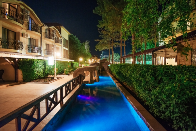 Закрытая благоустроенная территория наших курортов утопает в зелени.
