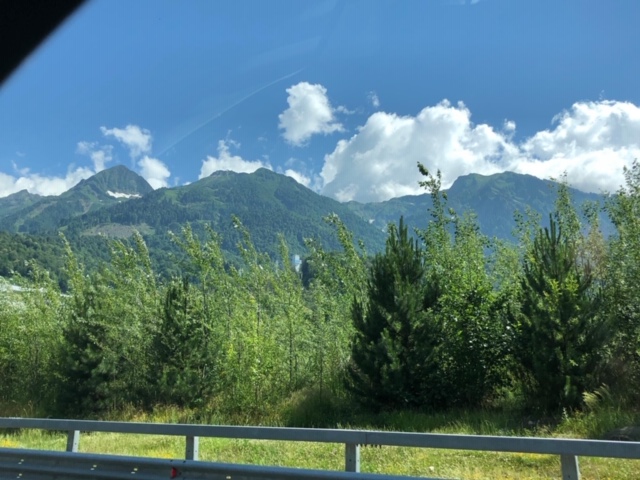 ???? От жары побережья некоторые сбегают в горы. Но и в горах в 5 утра солнечный луч целится прямо в глаз. Зато вечером наступает легкая прохлада. Снизу , с высоты 540 метров, мы видим « снежные заплатки». Где -то там говорят даже в июле катаются сноубордисты в «трусах на босу ногу». Это ещё один повод приехать в Сочи.