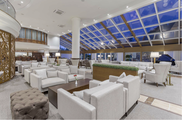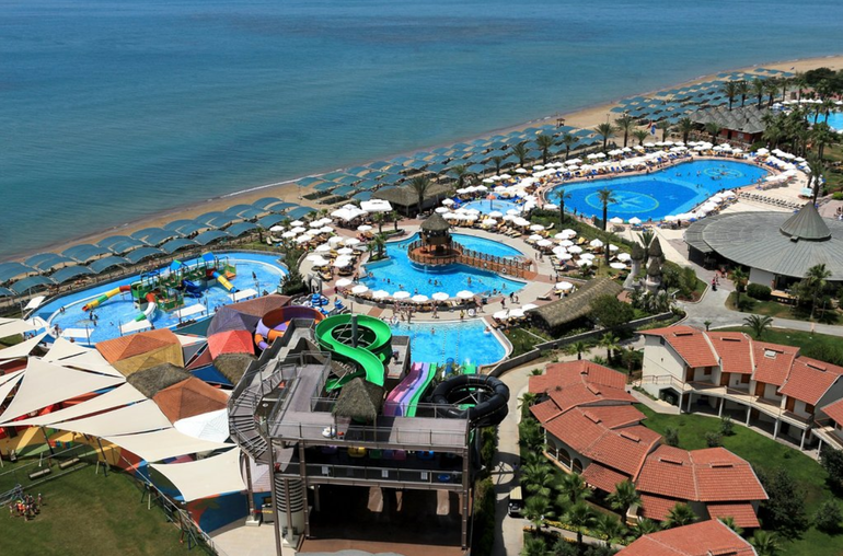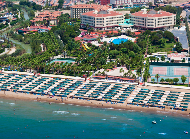 На его территории находится множество развлечений (лунапарк, аквапарк, боулинг и многое другое), которые помогут Вам провести незабываемый отпуск! Отель расположен на самом берегу моря и представляет собой одно основное семиэтажное здание (есть 7 лифтов), комплекс корпусов Lake Houses (23 трехэтажных здания), находящихся в центре, и дополнительный корпус (3-этажный, 1 лифт), расположенный позади основного здания (в 500 метрах).