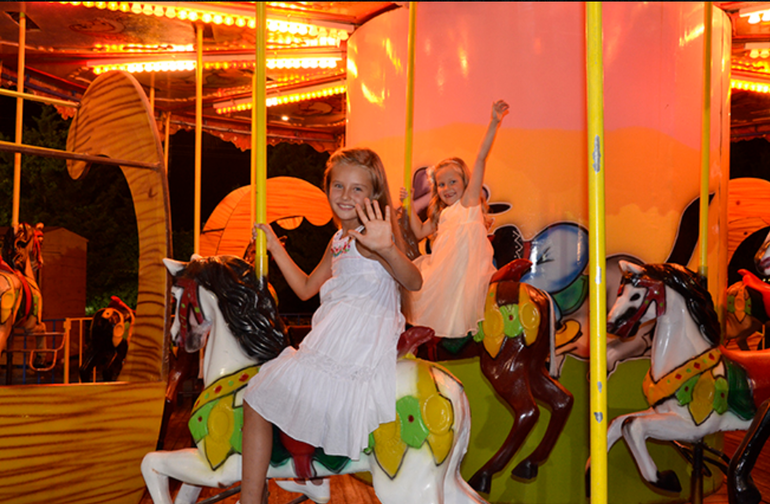 Луна-парк (работает до конца сентября, 20:00-00:00): 5 билетов на комнату бесплатно, по заезду (билеты действительны для всех аттракционов, 1 билет - 1 тип аттракциона), примерная стоимость 1 дополнительного билета 1,5 евро на одного взрослого/ ребенка.