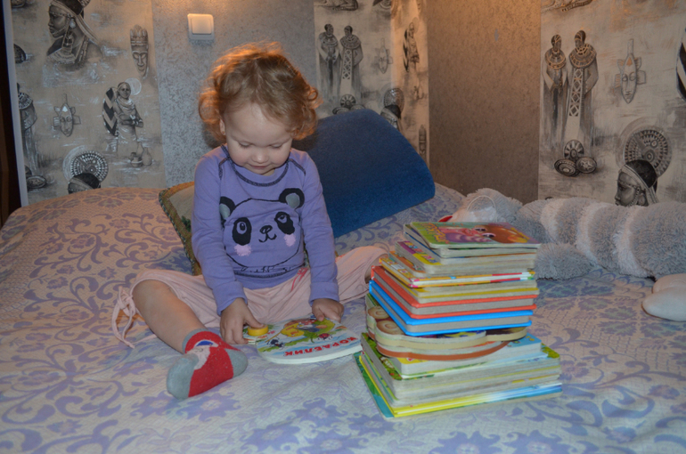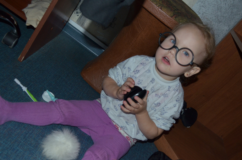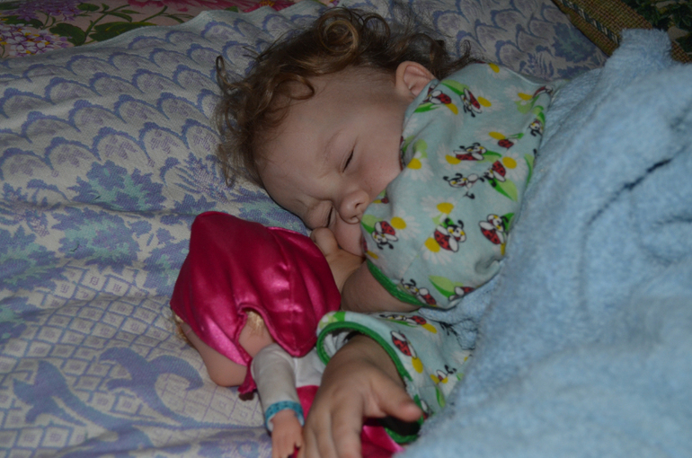 вечер... спит... даже не мешает ей папа, громко болтающий по телефону....