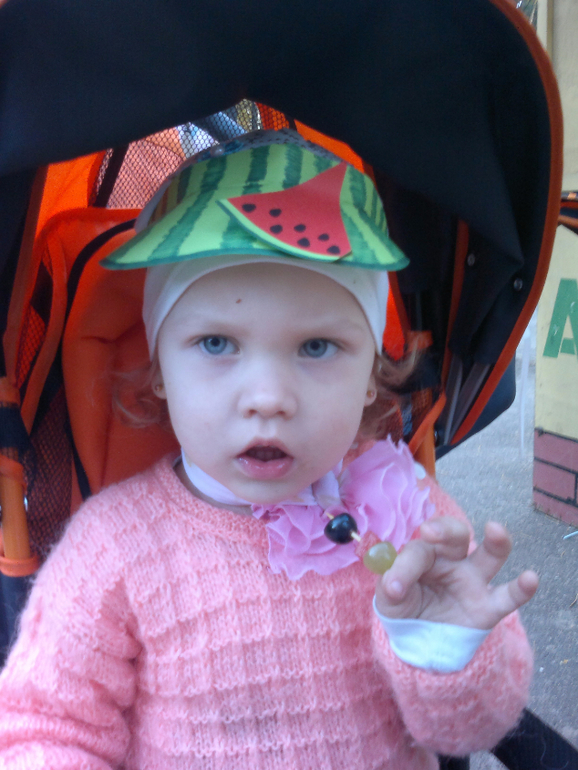 правда моя продурила дома... и мы пришли только на конец самый... но кепку и канапе фруктовое она все таки урвала)))