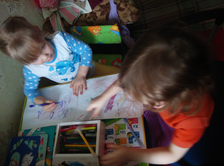 6го числа, как проснулись, принялись с Риткой творить бабушке подарок))))