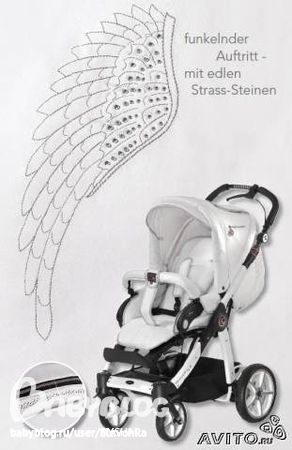 Продам коляску Hartan Racer GT, белая кожа с кристалами сваровски в виде крылышек. 15000