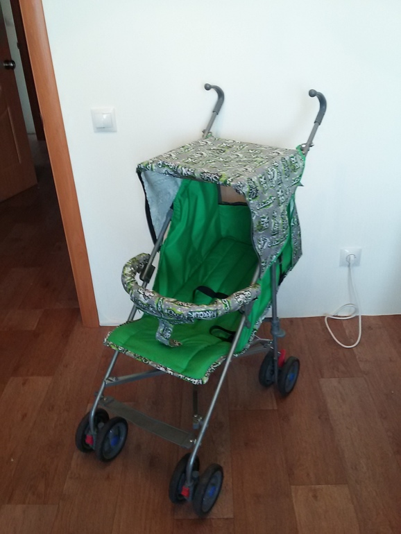 Это старенькая (8-летняя) трость геоби, нежно любимая за свою удивительную сверхвыносливость, т.к. покупали её с расчётом дёшево на пару месяцев, а она выдержала столько испытаний, перелётов и разных условий, что я решила дать ей вторую жизнь. Ткань дюспо зелёная и фитсистем серая с принтом. Под кат оч.много фото коляски, сумки, сетки, матрасика.