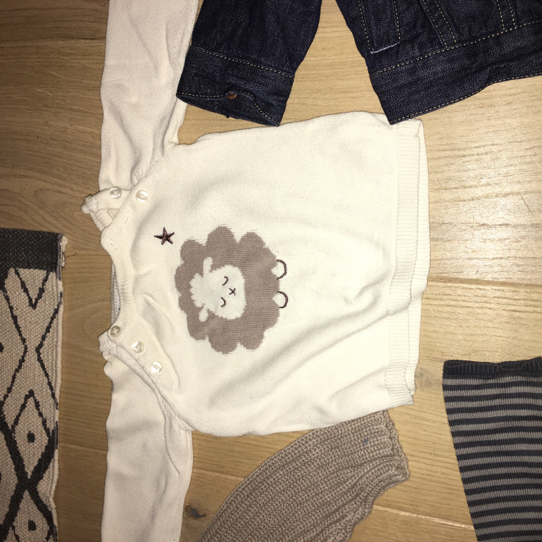 все в наличии,джинсовка 1тыс,носили 2 раза,как новая,полосатая кофта 500р,голубая которая с носиком и глазами? или берберри которая в комментах ниже? если зара с глазками,то она 800р(новая)