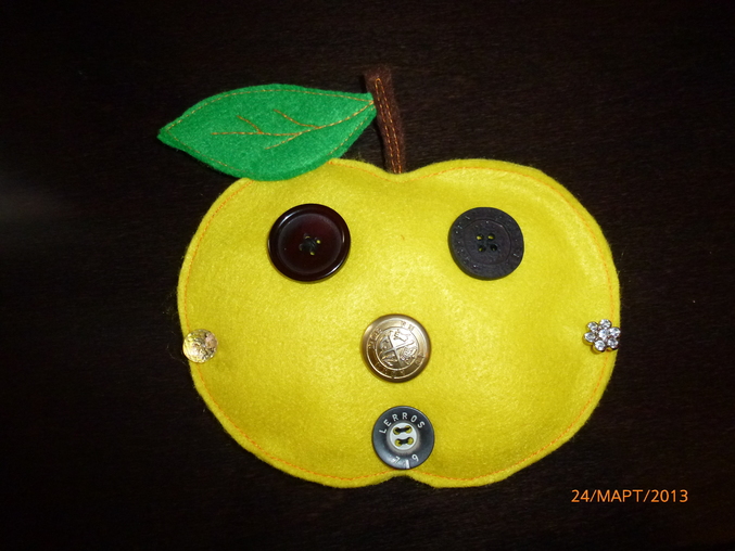 Вот такое яблочко сшила для дитя. С обратной стороны тоже пуговки. Надеюсь будет играть.