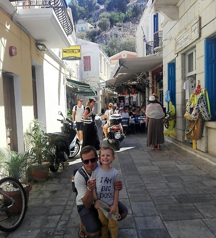 Еще один день ушел на посещение острова Сими, кораблик туда идет 2 часа. Отправляется с набережной Родоса, на троих вышло 50 евро с заездом для купания в красивейшую бухту на обратном пути. Тогда как оператор предлагал более чем за 200 евро. Правда с трансфером из отеля. Но все равно самостоятельно в любом случае экономия существенная. Остров примечателен тем что домики на нем цветные и расположены на горе. Сына укачало..Поэтому кто склонен к укачиванию однозначно принимайте таблетки или что то от укачивания если едите не на большом пароме как мы, качает капитально на волнах..Сам остров красивый конечно👍