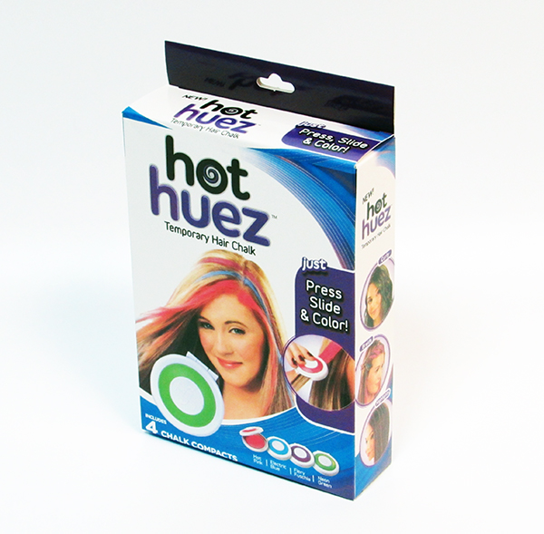 Волшебные мелки для волос Hot Huez - это специальная окрашивающая пудра, которая заключена в специальные компактные баночки. Всего в наборе четыре цвета: розовый, фиолетовый, синий и коричневый. Благодаря их сочетаниям, вы сможете выделить кончики волос или отдельные пряди, и уложить волосы в оригинальную молодежную прическу.