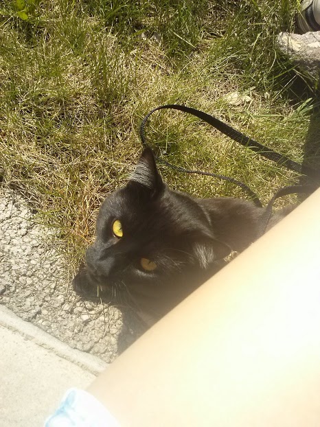 солнышко на улице! вышла позагорать ножками. и посмотрите на это выражение морды лица)) "когда же ты меня поведешь обратно домой в прохладную тень? " )))