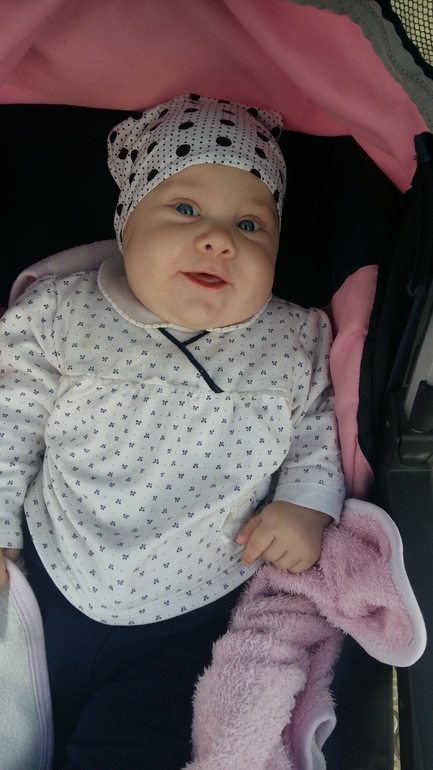Сегодня посидела в ходунках минут 15...вообще они ей не очень нравятся, но Вадим хотел ее покатать