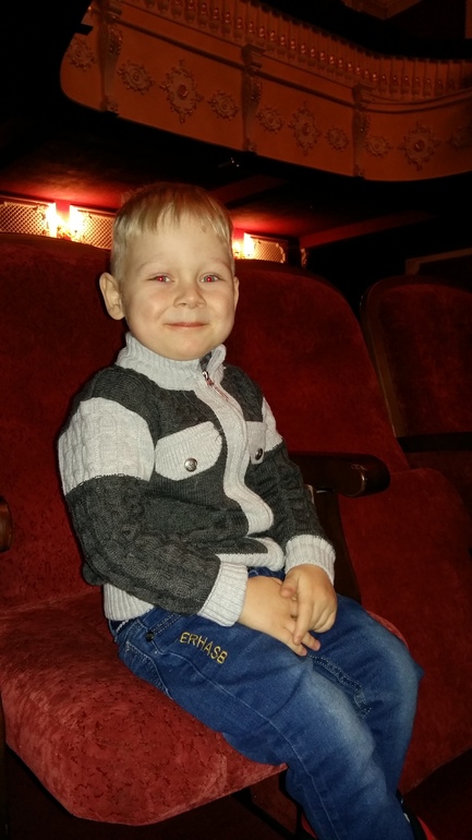Не верю, что я это сделала, но мы сходили в театр! У обоих куча впечатлений..я так боялась, но Вадим не носился, не орал,.спокойно смотрел сказку и хлопал, изредка издавая возгласы, смотря на огромные красивые люстры и балконы.