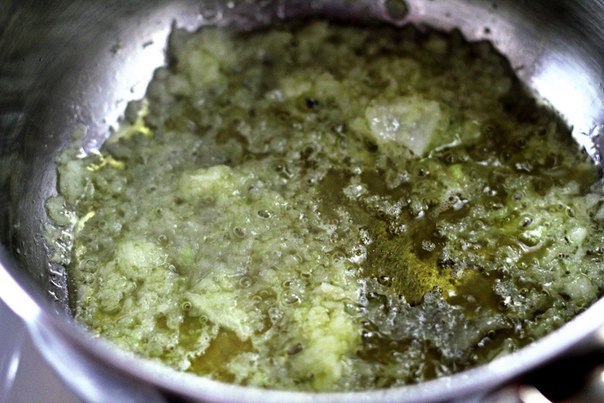 4) Выдавить чеснок через пресс ( чеснокодавку) и добавить к луку, поджарить еще 1- 2 минуты