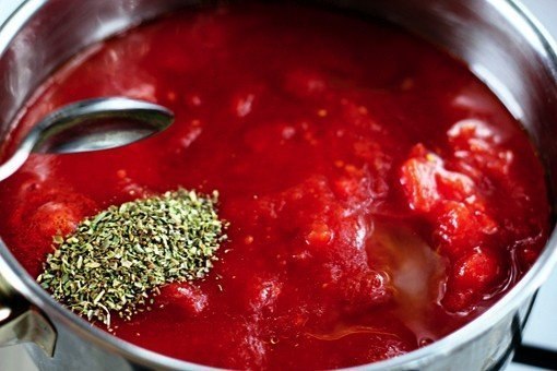 5) Добавить пюре из томатов (я покупала соус томатный в супермаркете, из состава там: помидоры, орегано и базилик, кто хочет может сделать сам из свежих помидоров)