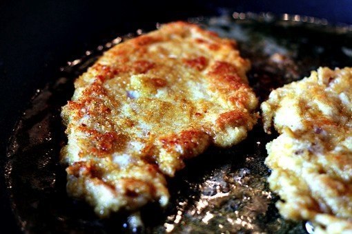 12) Окунуть каждую грудку сначала в яйцо, затем в сухари с пармезаном и выложить на сковороду - жарить с двух сторон до золотистой корочки