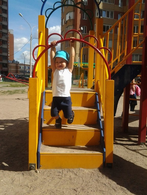 Последнее время на прогулках самой любимой игрой для него являются - догонялки. Вот идем мы по нашему вечернему микрорайону и тут раздается веселый крик: Мама, го-го! Ну что ж...приходиться менять свою размеренную походку на шаг подбитого гуся, изображающего побег. И вот это веселое маленькое тельце бежит, смеется, заливается, иногда запрокидывая голову для пущего эффекта веселости, и ты ему подыгрывая, останавливаешься, и тут в твою попу влетает с таким же звонким смехом то самое любимое и милое личико. Хватает крепок тебя за ногу и ты уже понимаешь, давно понятную тебе фразу о том, что никуда ты от него не денешься, так и будешь наслаждаться криками: го-го, вперемешку со смехом.