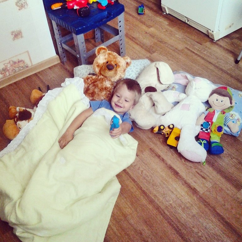 Спит у себя, но засыпает чаще всего между нами. При чем чаще всего просит постучать по попе (Привычку сделала ребенку. В младенчестве, пока он сосал сисю, я настукивала легонько ему по попе какую-нибудь мелодию). 30 секунд и деть спит. Ах!Да! Самое важное: это должно проходить в полной темноте, и желательно с выключенными гаджетами. Поэтому папе новости чаще всего приходиться дочитывать после того, как зай уснул. Но опять таки, чаще всего на кровати оказываются два спящих сурка, хотя по попе постукивала одному. За ночь просыпается один раз, часа в 2, чтоб пописать. Пока папы не было, пару раз я зависала в ванной, и как раз в час, Дима приходил пописать, вылезая каким-то образом, сонный из своей кровати.