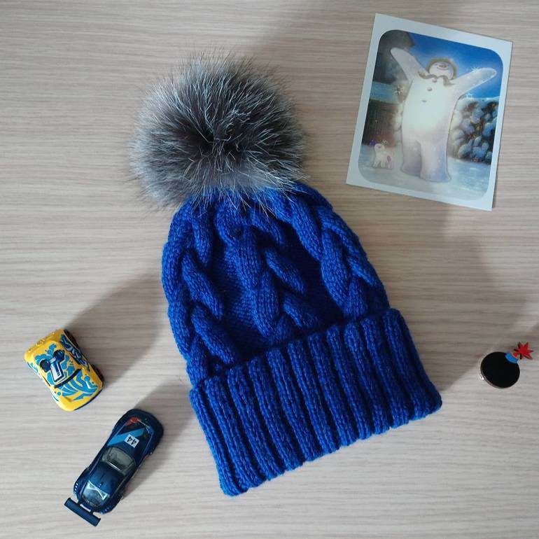 На фото взрослая шапочка из объемной пряжи MUKA (100% перуанская овечка).