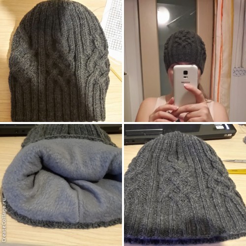 ОГ 56-58, высота 22-23 см. Пряжа - Alize Lanagold 100 гр. (даже поменьше). Спицы №3 и 3,5. Флисовый подклад.