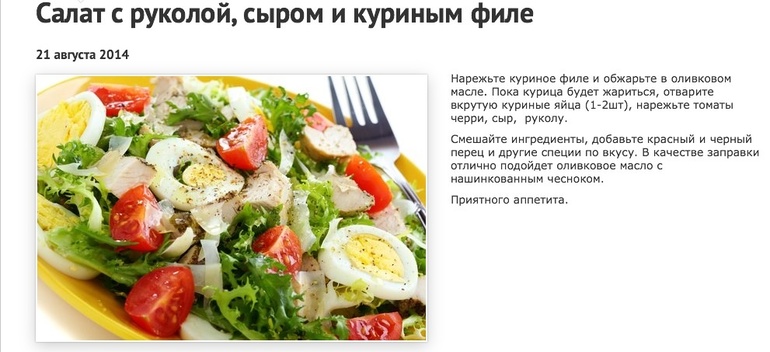 Марина → Курица, индейка Новенькая Спам Мама мальчика (13 лет) Москва Салат с курицей, сыром и рукколой