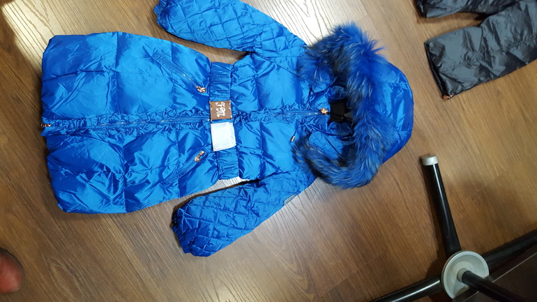 Длинна по спинке 78 см. Плечо 12 см, рукав 50 см, талия 35, если растянуть резинку то 42 примерно. Утеплитель синдепон