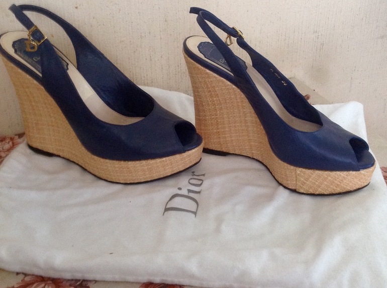 Красивые босоножки на платформе. Состояние очень хорошее. Профилактику не ставила, даже набрйки не меняла:) маркировка 36. Привезены из Италии. Платформа сзади 12, спереди 2. Стелька 23. Логотип Диор на застежках сбоку. Цвет - глубокий синий. Еще фото по запросу.